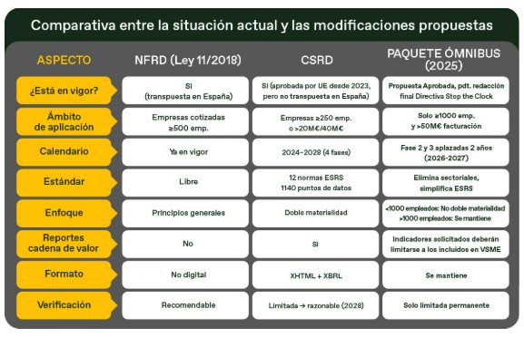 - Reducción del ámbito de aplicación: de las 55.000 empresas inicialmente previstas, solo unas 7.000 estarán finalmente obligadas a reportar conforme a las directivas de sostenibilidad.