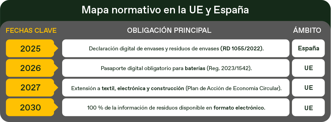 La Unión Europea está tejiendo un marco regulatorio que obliga a trazar digitalmente tanto productos como residuos. España se adelanta con normas propias que ya marcan el camino.